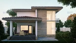 Clientul a solicitat optimizarea unei variante de proiect, iar arhitecții UberHause®au realizat un joc de volume atractiv, cu linii clar conturate și placaje contrastante, riguros încadrate în ansamblul noului concept. Casa are parter și etaj, este construită cu o structură din cadre de beton armat. Living-ul și dining-ul de la parter oferă suficient spațiu pentru o plăcută petrecere a momentelor pe parcursul zilei, iar cele trei dormitoare de la etaj asigură garanția refacerii în liniște a forțelor peste noapte. Dimensiunile parterului sunt de 14 m x 11 metri iar suprafața construită desfășurată este de 270 metri pătrați.